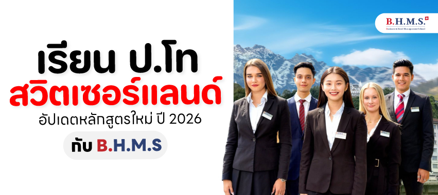 - เรียนต่อสวิตเซอร์แลนด์ ป.ตรี-โท กับ BHMS ทุน 320,000 บาท เรียน 6 เดือน+ฝึกงาน 6 เดือน ฝึกงานมีได้รายได้ขั้นต่ำ 80,000-100,000 บาท/เดือน