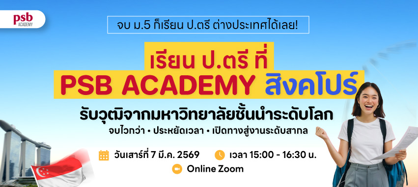 7 มี.ค. 2569 >> เรียนเร็ว จบไว พร้อมก้าวสู่การทำงานระดับสากล กับปริญญาตรีที่ PSB Academy สิงคโปร์