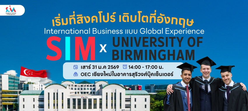 31 ม.ค. 2569 - เริ่มสิงคโปร์ จบอังกฤษ/ดูไบ ปริญญาจาก University of Birmingham กับ SIM Global Education พบกันที่ OEC เชียงใหม่