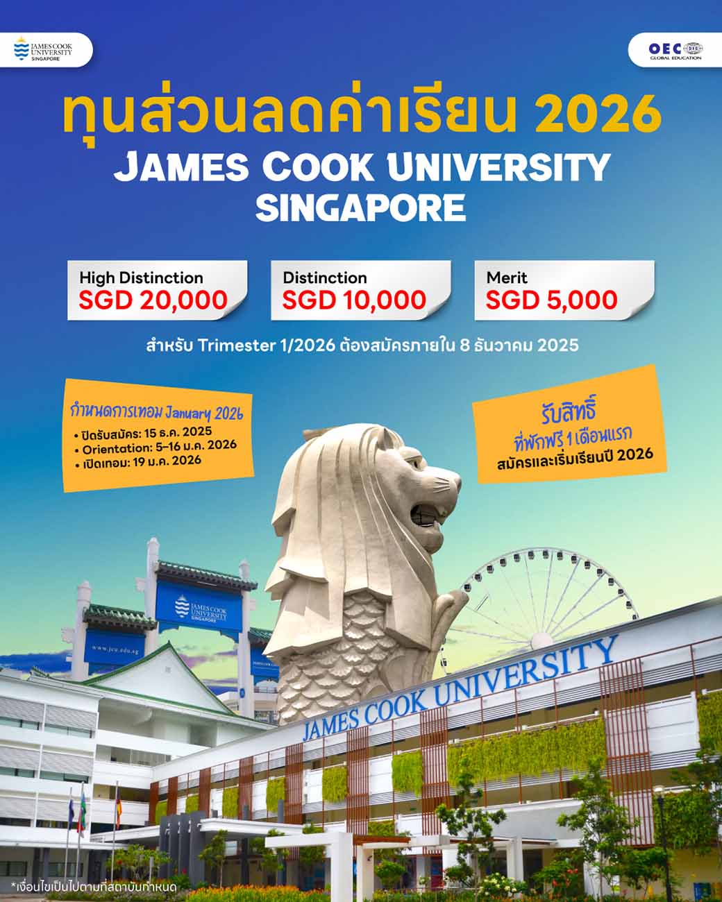 เรียนต่อ ป.ตรี-โท สิงคโปร์ James Cook University Singapore