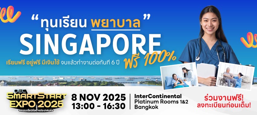 - เปิดรับสมัครแล้ว ทุนเรียนพยาบาล ที่สิงคโปร์ ฟรี 100% ตลอดหลักสูตร เรียนจบได้สัญญางานอีก 6 ปี