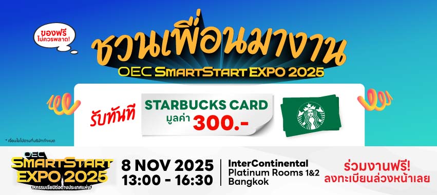 8 พ.ย 2568 » OEC SmartStart Expo 2025 - มหกรรมเรียนต่อต่างประเทศแห่งปี ยกทัพสถาบันชั้นนำมากกว่า 30 แห่ง จากทั่วโลกมาไว้ในงานนี้แล้ว *ลุ้นรับทุนเรียนฟรีที่ประเทศอังกฤษ