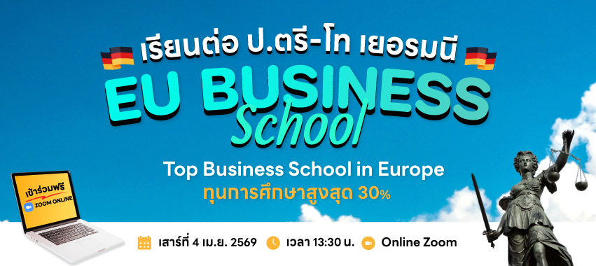 4 เม.ย. 2569 » เจาะลึกเรียนต่อบริหารธุรกิจที่ยุโรป กับ EU Business School หลักสูตรอังกฤษ 100% พร้อมรับทุนสูงสุด 30%