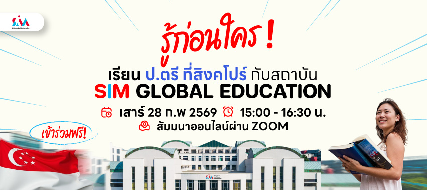 28 ก.พ. 2569 >> เรียน ป.ตรี สิงคโปร์กับสถาบัน SIM Global Education วุฒิระดับโลก