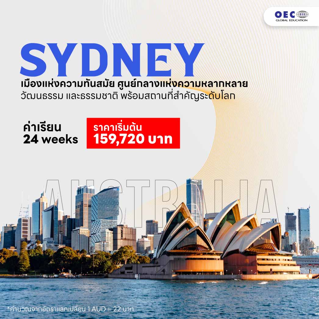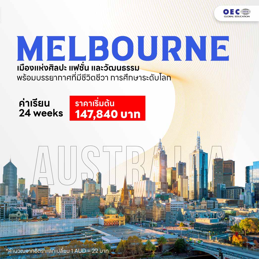 ออสเตรเลียเป็นทางเลือกยอดนิยมสำหรับนักเรียนไทยที่ต้องการไปเรียนภาษาและทำงานระหว่างเรียน สมัครลงเรียน 14 สัปดาห์ขึ้นไป ระหว่างเรียนสามารถทำงาน Part time ได้ตามกฎหมาย มีหลายสถาบันให้เลือกเรียน จะไปเรียน เที่ยว ทำงานก็ครบ ตอบโจทย์ที่สุดพี่ OEC รวมมาให้ 3 เมืองฮิต เรียน + เที่ยว + ทำงาน ที่ออสเตรเลีย 2026 อยากไปเมืองไหนราคาเท่าไหร่ เข้ามาปรึกษากับพี่ OEC ไดเ้ลย