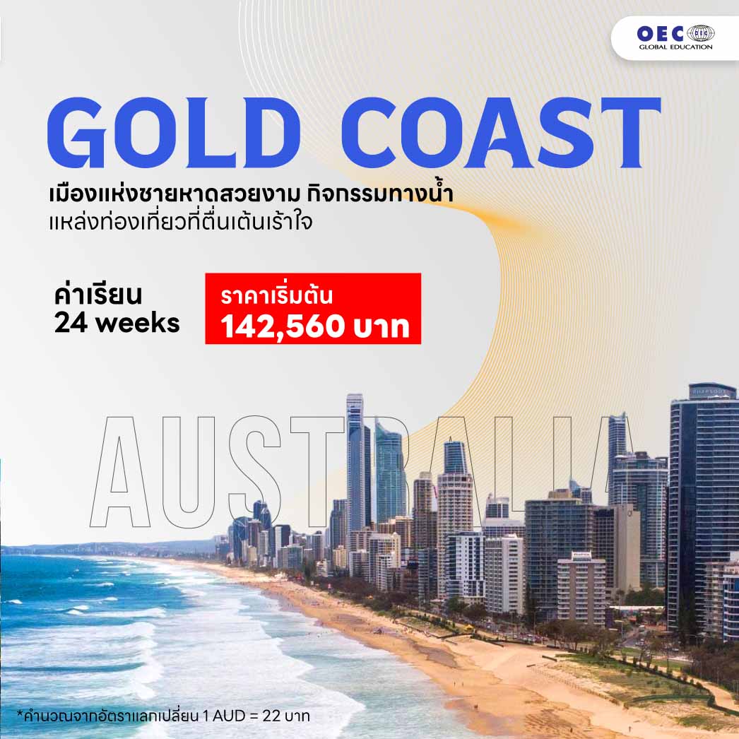 สำหรับผู้ที่ชื่นชอบชีวิตติดทะเล โกลด์โคสต์เป็นเมืองที่เหมาะสมที่สุด เพราะเมืองนี้เต็มไปด้วยหาดทรายสวยงามและบรรยากาศรีสอร์ต นอกจากนี้ยังมีโรงเรียนภาษาชั้นนำที่ตั้งอยู่ในเมืองนี้ ที่จะทำให้การเรียนภาษาอังกฤษสนุกสนานและเพลิดเพลิน