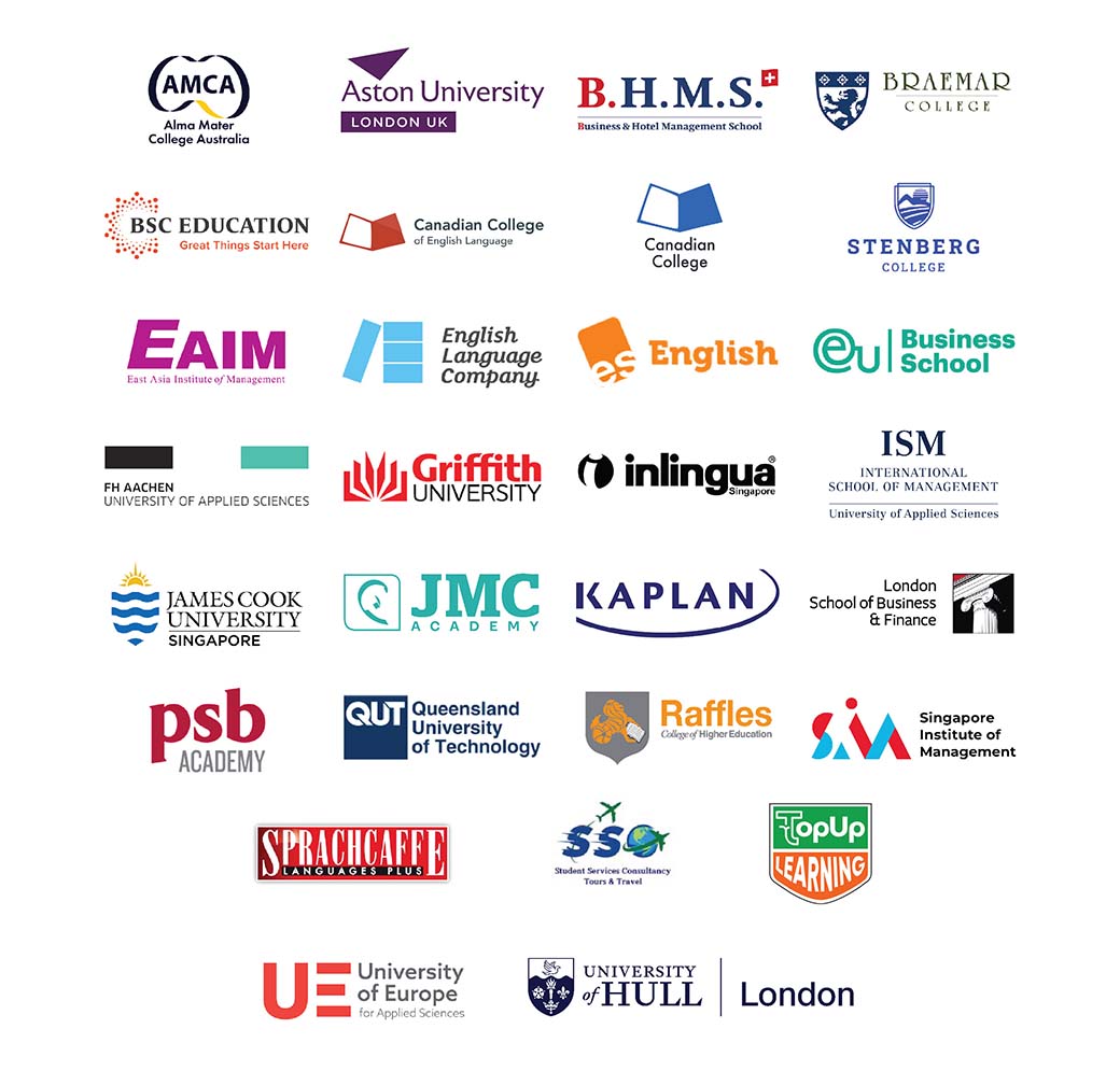 พบกับ บูธสถาบันการศึกษามากกว่า 30 แห่ง จากหลากหลายประเทศทั่วโลก ครอบคลุมทุกระดับการศึกษา ตั้งแต่มัธยมศึกษา หลักสูตรภาษา ปริญญาตรี ไปจนถึงปริญญาโท