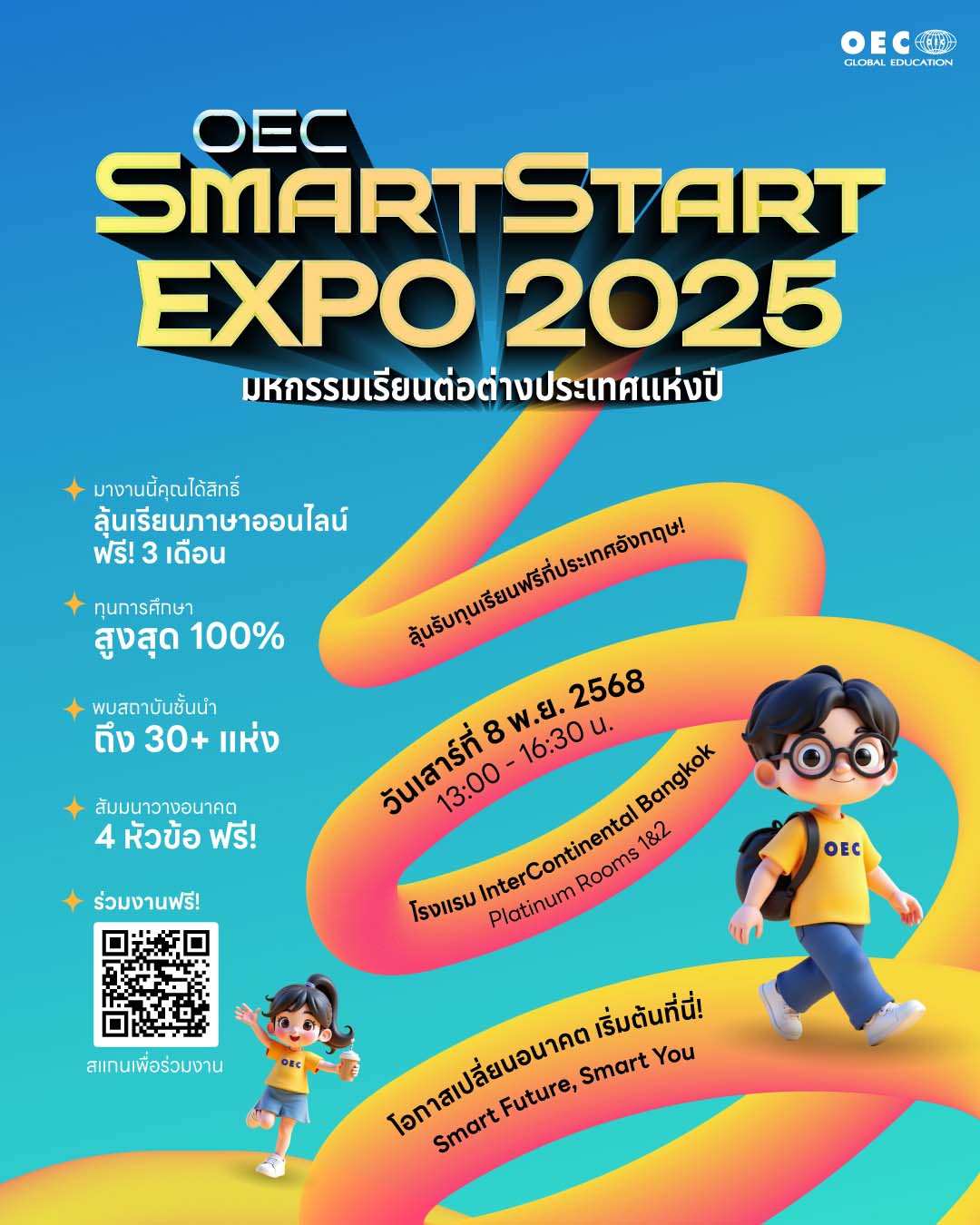 ลุ้นทุนเรียนภาษาที่ประเทศอังกฤษ และทุนอื่น ๆ อีกมากมายมาเจอกันในงาน OEC SmartStart Expo 2025 - มหกรรมเรียนต่อต่างประเทศแห่งปี
