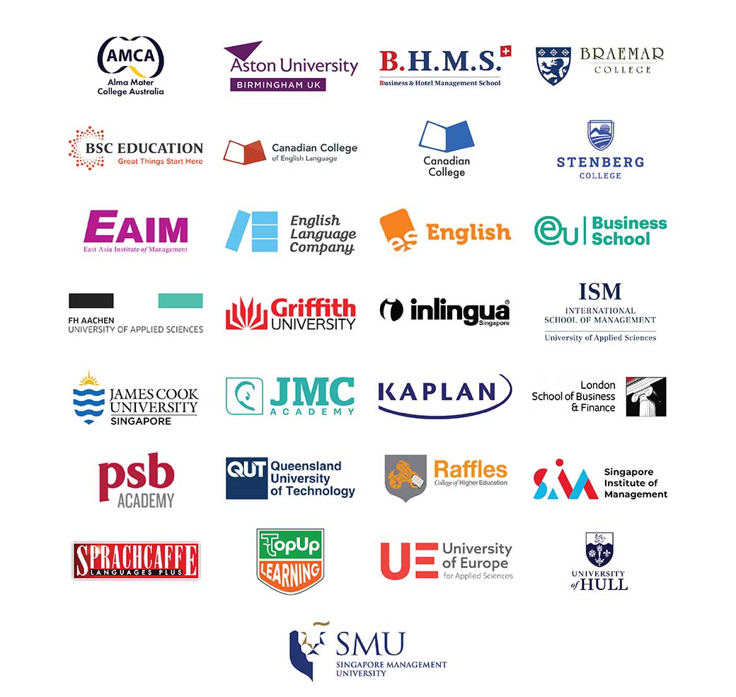 พบกับ บูธสถาบันการศึกษามากกว่า 30 แห่ง จากหลากหลายประเทศทั่วโลก ครอบคลุมทุกระดับการศึกษา ตั้งแต่มัธยมศึกษา หลักสูตรภาษา ปริญญาตรี ไปจนถึงปริญญาโท