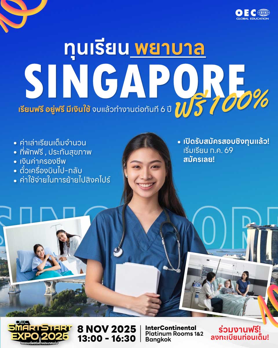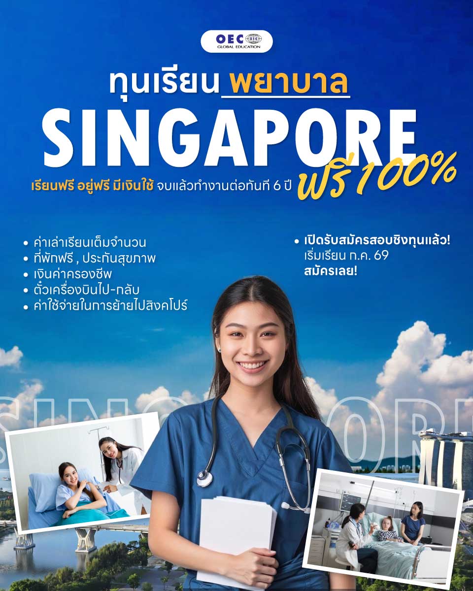 ทุนเรียนพยาบาลฟรี 100% ที่สิงคโปร์ เรียนจบพร้อมเซ็นสัญญางาน 6 ปี