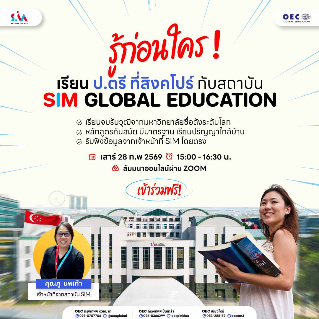 28 ก.พ. 2569 >> เรียน ป.ตรี สิงคโปร์กับสถาบัน SIM Global Education วุฒิระดับโลก