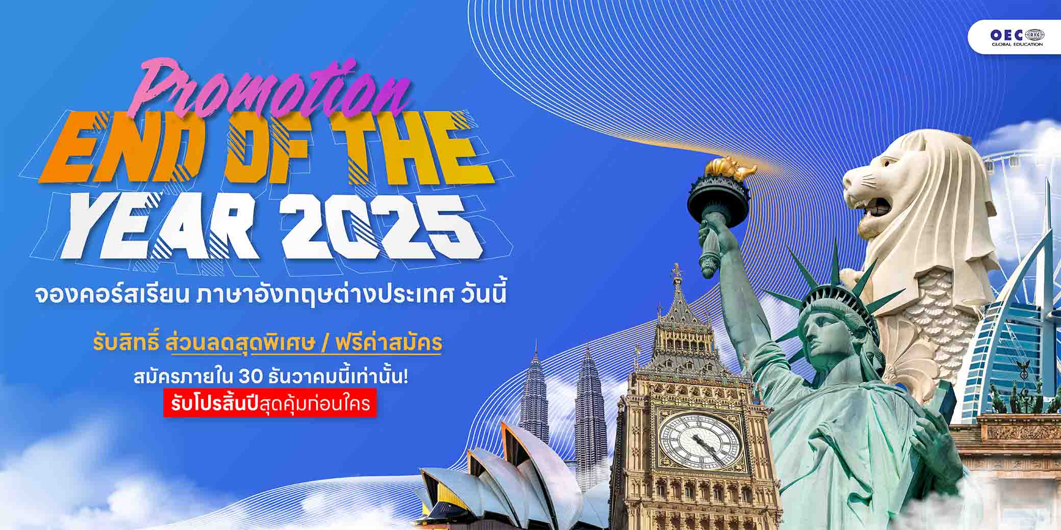 อยากอัปสกิลภาษาให้ก้าวกระโดด? OEC Global Education จัดให้โปรโมชั่นพิเศษส่งท้ายปี จองคอร์สเรียนภาษาต่างประเทศวันนี้ ไม่ว่าจะเรียนที่ อังกฤษ อเมริกา แคนาดา ออสเตรเลีย หรืออีกหลายประเทศทั่วโลก รับทันที ส่วนลดสุดพิเศษ / ฟรีค่าสมัคร สมัครและชำระค่ามัดจำภายในวันที่ 30 ธันวาคม 2568 นี้เท่านั้น!