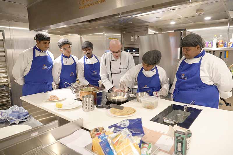 เรียนทำอาหาร การโรงแรม หลักสูตรจากสวิสเซอแลนด์ เน้นทฤษฎีควบคู่กับการฝึกปฎิบัติ และฝึกงานบนเรือควีนส์อลิซาเบธ 2 หลักสูตรประกอบด้วยการฝึกงานแบบได้รับค่าตอบแทน ควีนส์อลิซาเบธ 2 เป็นเรือสำราญสุดหรู ที่ปัจจุบันทำเป็นโรงแรมลอยน้ำ ระดับ 4 ดาว ที่จอดเทียบท่าอยู่ที่ท่าเรือ Port Rashid ในดูไบ โรงแรมในเรือที่มีถึง 13 ชั้น ประกอบไปด้วยห้องพัก 447 ห้อง หลายประเภท เช่น สแตนดาร์ด สุพีเรีย ดีลักซ์ เลกาซี่ และสวีท ห้องอาหาร 6 ห้อง และห้องประชุม ห้องจัดเลี้ยง 5 ห้อง นอกจากนี้ยังมี ห้องฟิตเนส สระว่ายน้ำ และโรงละคร