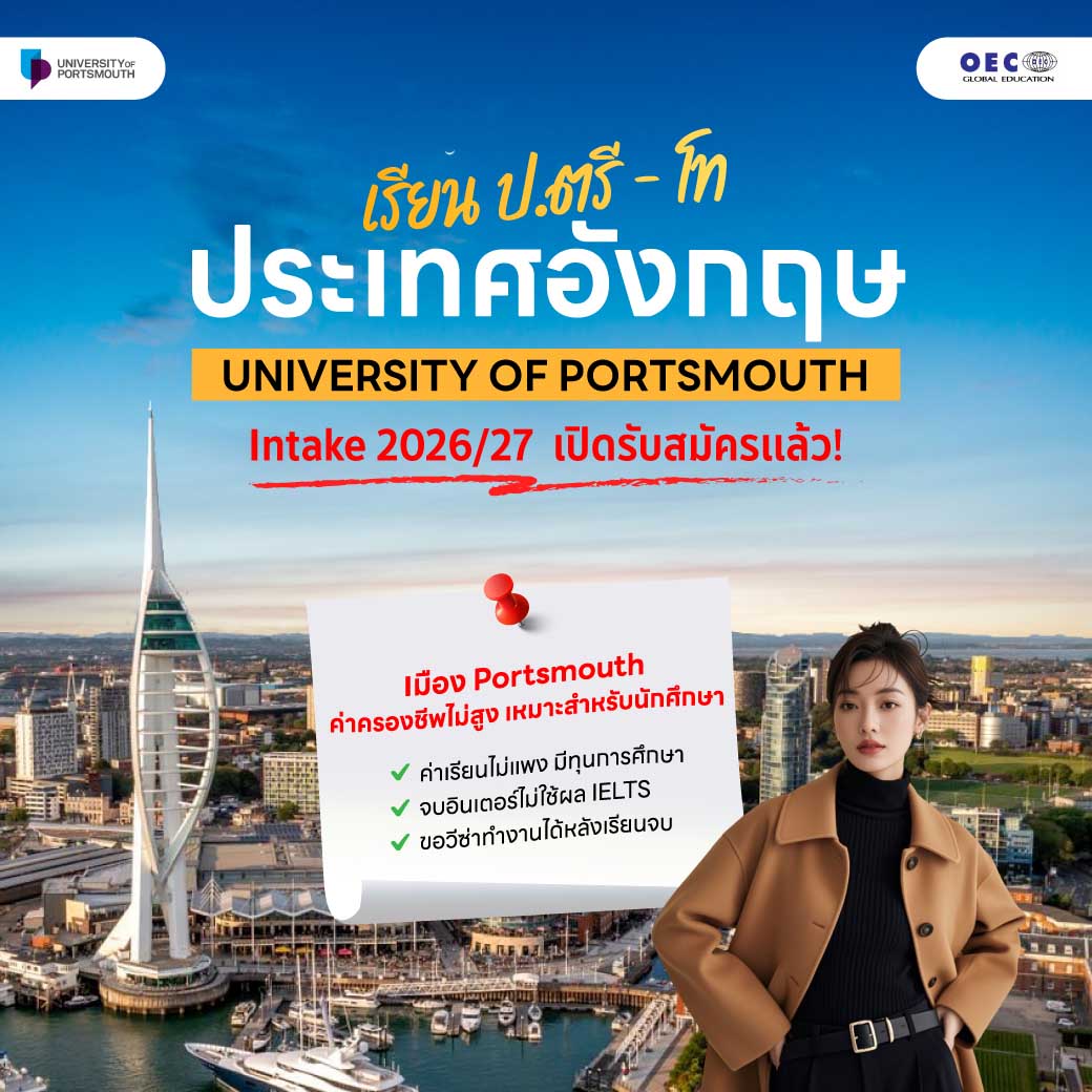 เรียน ป.ตรี - โท University of Portsmouth ประเทศ อังกฤษ Intake 2026/27 เปิดรับสมัครแล้ว