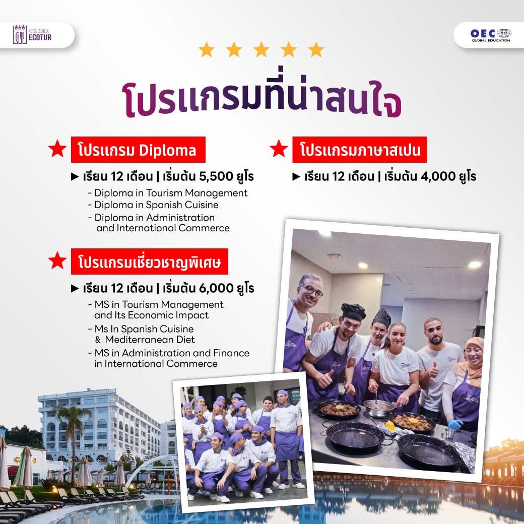 เรียนต่อสเปน 1 ปี ฝึกงานมีรายได้ ที่พักฟรี อาหารฟรี! ที่ Hotel Escuela ECOTUR